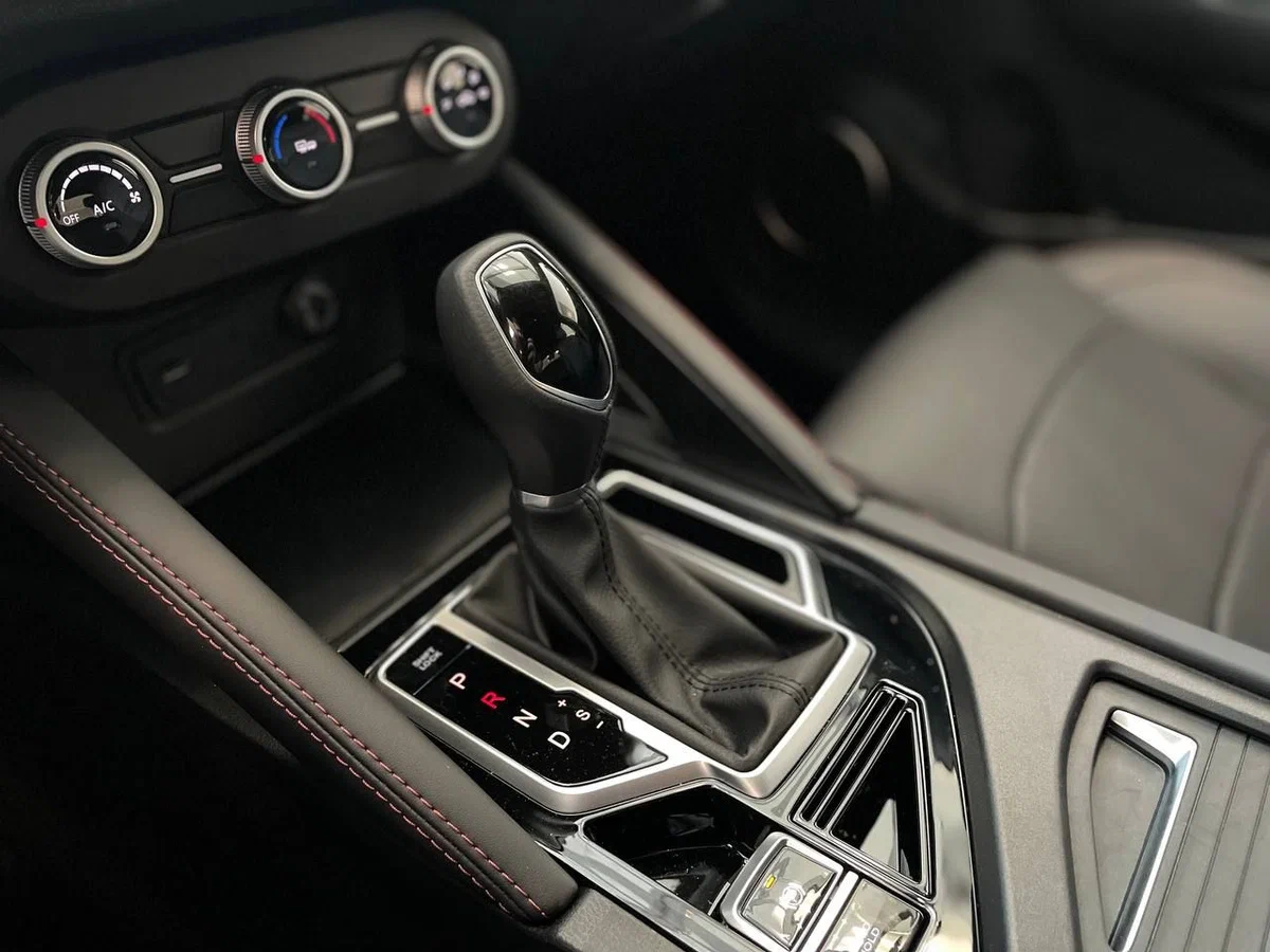 • Центральная консоль черного цвета со вставками из эко-кожи с прострочкой