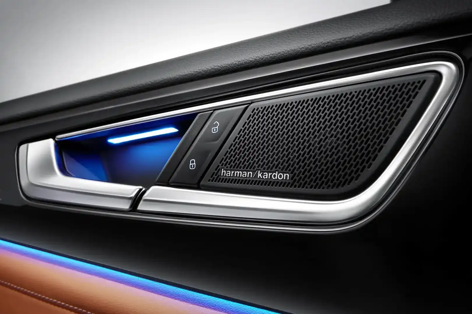 • Передние вентиляционные дефлекторы, переключатель света, блок настройки зеркал и стеклоподъемников с подсветкой и хромированной отделкой